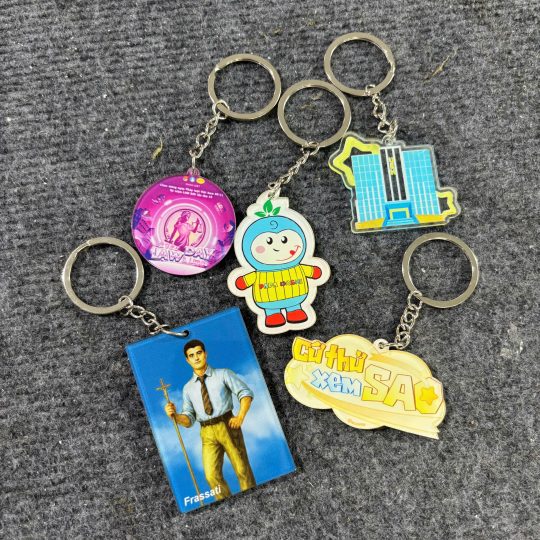 Đa dạng mẫu mã: móc khóa tròn, vuông, chữ nhật, hình logo, hình nhân vật,…