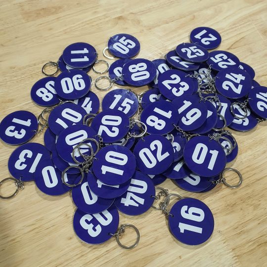Công đoạn này quyết định hình dáng móc khóa: tròn, vuông, bo góc hay theo hình logo.